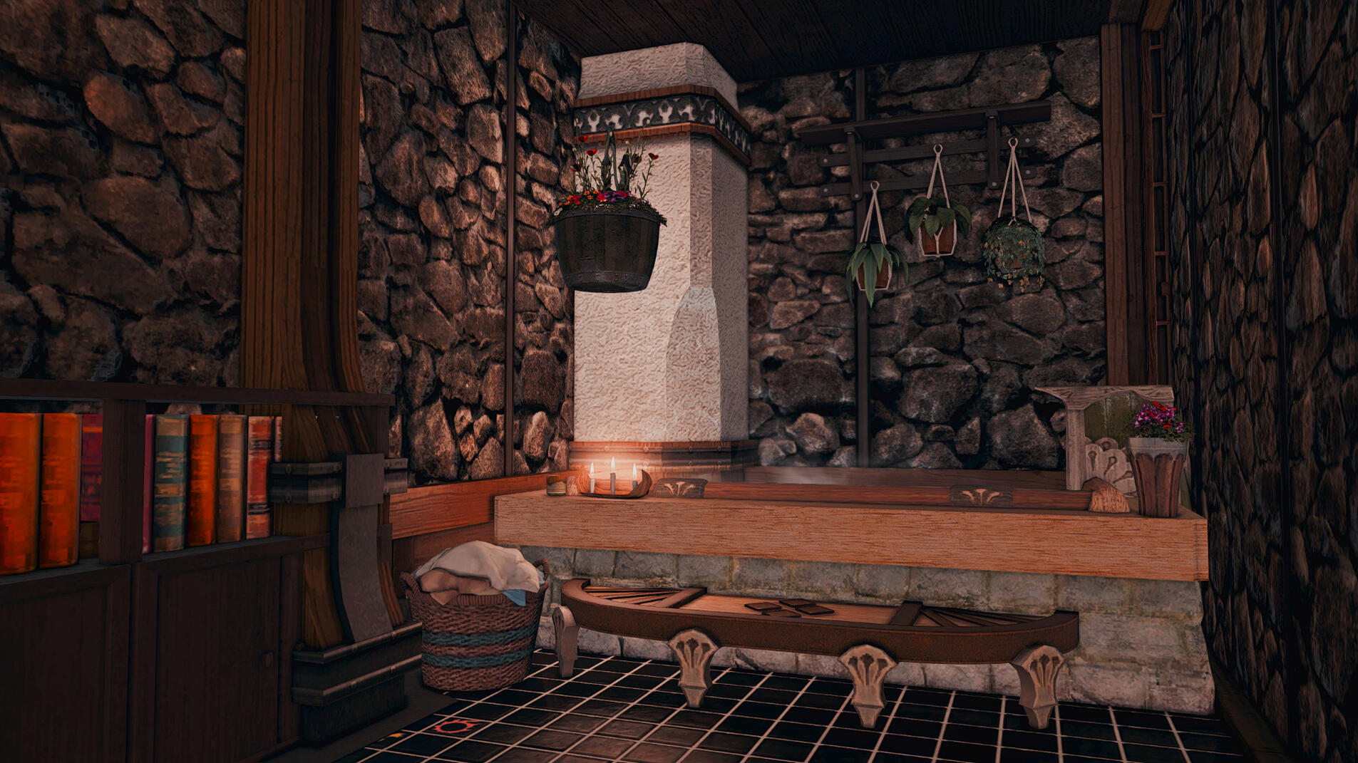 My personal private house located in the Goblet. Upstairs is a warm spot to sit by the fire with weapons displayed on the walls. Downstairs is a pond to read and doze by to enjoy the ambient sounds of the running water, and a bed around the corner with an open window that overlooks the pond.[ Demolished ]